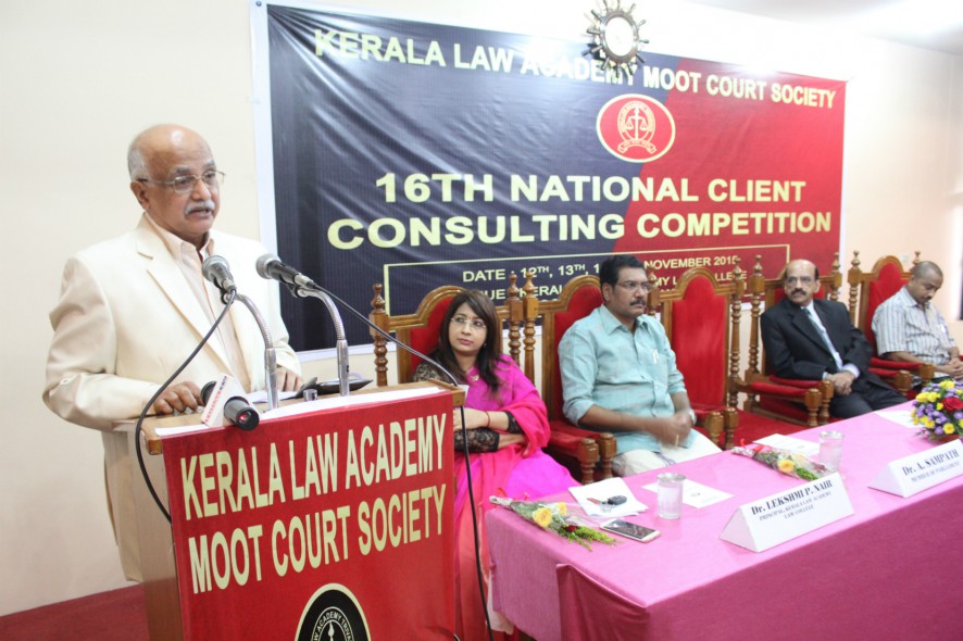 National Client Consulting Competition for Justice P. Govinda Menon Memorial Ever Rolling Trophy organized by the Kerala Law Academy Law College, Trivandrum begins with a grand inauguration ceremony. Justice Pius C. Kuriakose, Kerala Lok Ayuktha and former Chief Justice of High Court of Sikkim inaugurate the 16th edition of Competition by lighting the lamps. Dr. A. Sampath, Member of Parliament, presided over the function. Shri. K. Sasidharan Nair, Kerala State Election Commission is also present in the function for the key note address. Dr. Lekshmi P. Nair, Principal of Kerala Law Academy Law College makes welcome speech and vote of thanks is delivered by Shri. Anil Kumar G., the General Secretary of Moot Court Society. The competition has a participation of teams from various Law Schools and Colleges across the country including a number of National Law Universities.