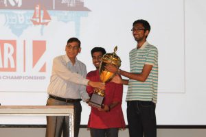 The final round of the competition featured two teams from VIT, a team from NLS, and a team comprising a school student from Chennai and a student from VIT, debating the motion “This House, as the feminist movement, would endorse the Ethics of Care”. The team from VIT comprising Abhilaksh Sharma and Gautam Sridhar was crowned the Champions of the 7th NALSAR IV.