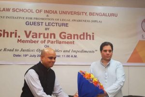 The Student Initiative for Promotion for Legal Awareness (SIPLA) of National Law School of India University, Bangalore conducted a lecture by Shri Feroze Varun Gandhi, Member of Parliament and Member, Standing Committee on External Affairs on the 19th of July, 2018 at 11:00 AM in the Examination Hall. The lecture was on “The Road to Justice: Opportunities & Impediments.” Attendance was mandatory for students in the IV and V Year, LLM Batches, and MPP Batches. Shri Gandhi talked about many controversial issues on politics, educational policies, equality, etc., and a piece on it was covered by the The Times of India. The piece can be found by clicking on this link.