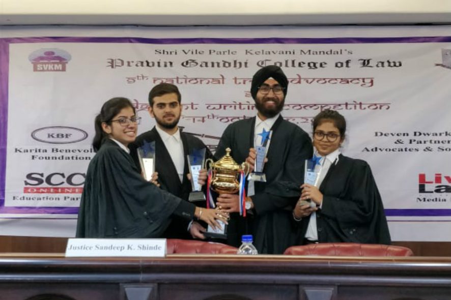 The team from Bharati Vidyapeeth Deemed to Be University’s New Law College, Pune comprising of Simarjeet Sinha Satia (3rd year), Deepali Mahawar (3rd year), Shradha Maheshwari (3rd year) and Kunal Mansharamani (2nd year) emerged as Runners up at Pravin Gandhi’s 9th Nyayavapokan Trial Advocacy and Judgment Writing Competition 2018 held from October 11- 14 at Mumbai.