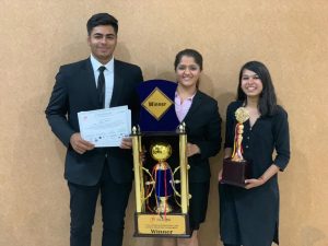 The team also bagged the award of the best mediator team in the same competition based on score of preliminary rounds and final rounds. Twinkle Malukani represented the team as mediator in finals. The competition had more than 50 teams participating from various eminent law institutes namely, NLSIU, NALSAR, NUJS, GNLU,RMLNLU, RGNUL, MNLU, SLS Pune, GLC, UPES and many more from India and others from abroad.