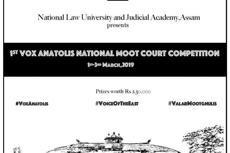 National Law University and Judicial Academy, Assam presents the maiden edition of its “Vox Anatolis National Moot Court Competition.” The phrase Vox Anatolis means voice of the east. The concept behind introducing this Moot Court Competition is to engage law students across India in a mooting exercise that involves legal issues which are pivotal in the Eastern Part of the Country . This Moot Court Competition will primarily be based on a confluence of Constitutional Law, International Law, Environmental Law and other allied streams. In its maiden edition, the Moot Problem of the Vox Anatolis National Moot Court Competition is based on Constitutional Law, Rights of Refugees, Rights of Indigenous People, Citizenship and other other allied themes.