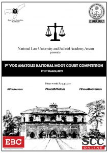 National Law University and Judicial Academy, Assam presents the maiden edition of its “Vox Anatolis National Moot Court Competition.” The phrase Vox Anatolis means voice of the east. The concept behind introducing this Moot Court Competition is to engage law students across India  in a mooting exercise that involves legal issues which are pivotal in the Eastern Part of the Country . This Moot Court Competition will primarily be based on a confluence of Constitutional Law, International Law, Environmental Law  and other allied streams.  In its maiden edition, the Moot Problem of the Vox Anatolis National Moot Court Competition is based on Constitutional Law, Rights of Refugees, Rights of Indigenous People, Citizenship and other other allied themes.