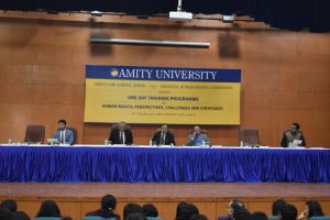 Prof. (Dr.) Dilip Kumar Bandyopadhyay, Chief Adviser (FPO, Amity Group), Chairman-Amity Law Schools, also addressed the gathering and expressed his views on the importance of Human Rights. He said that the law graduates are the only one who can bring a change in the world. He quoted Dr. Ashok K. Chauhan, Hon’ble Founder President Sir, where he says that ‘A nation is built through the process of education and the process of transformation’. He congratulated the organizing committee for their efforts for successfully organizing the training programme.