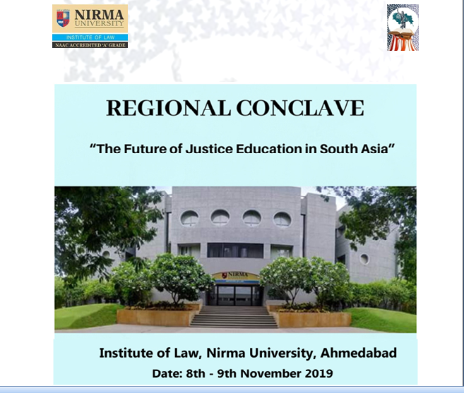 The Regional GAJE Conclave on the “The Future of Justice Education in South Asia” is the inaugural edition of gathering the leader and education of South Asia engaged in the field of justice education. The two day conclave will take place at the Institute of Law, Nirma University in Ahmedabad, Gujarat on 8th and 9th November, 2019. This conclave seeks to bring together clinical practitioners and educators from across the South Asian region on a common platform through a series of panel discussions, interactive sessions and informal networking conversations.
