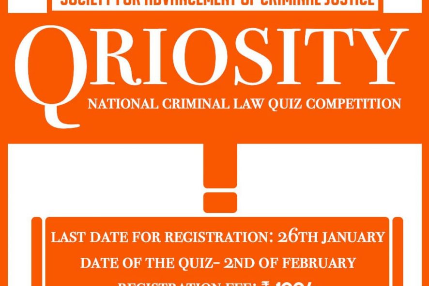 The Society for Advancement of Criminal Justice (SACJ) at West Bengal National University of Juridical Sciences (WBNUJS), Kolkata, is proud in announcing the commencement of its first flagship event of the year, The 4th NUJS-SACJ National Criminal Law Quiz Competition, QRIOSITY 2020.