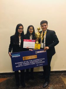A team comprising of Kaushitaki Sharma, Paridhi Gaur and Dev Sareen (II Year) have been declared as “Runners-Up” at the 2nd SAARCLAW – JLU International Moot Court Competition 2020.
