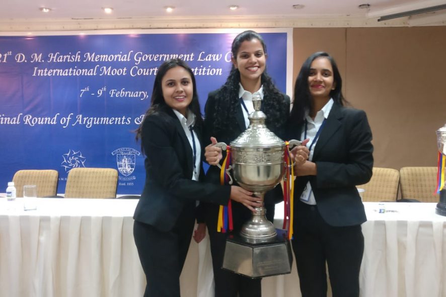 School of Law CHRIST (Deemed to be University) is immensely proud to announce that the moot team comprising of Prajna Kariappa, Ipkshita Singh and Shanvi Agarwal have been adjudged as the Winners (Best Team) at the prestigious 21st DM Harish Memorial Government Law College International Moot Court Competition hosted by Government Law College, Mumbai from 7-9 February, 2020.