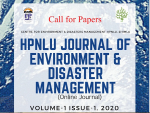 The HPNLU Journal of Environment and Disaster Management, (Volume 1 Issue 1 of 2020) invites scholarly contributions for the maiden issue. The maiden issue of the Journal is scheduled to be published online in the month of December 2020. The journal solicits scholarly contributions relating to legal cum theoretical developments in the field of Environment Law and Disaster Management. The last date for submission of contributions is October 18, 2020. The selection of entries shall be based on a double-blind peer review. Queries about the submission of papers and related matters may be directed to cedm@hpnlu.ac.in