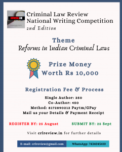 In 2019, CrLR successfully conducted the first edition of Criminal Law Review National Writing Competition. We are now back with the 2nd edition.