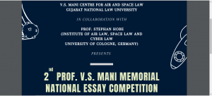 The V.S. Mani Centre for Air and Space Law (VSMCASL), Gujarat National Law University in collaboration with the Institute of Air Law, Space Law and Cyber Law, University of Cologne, Germany and sponsored by the generous grant of Prof. Stephan Hobe is pleased to launch 2nd Prof. V.S. Mani Memorial National Essay Competition 2020. The Essay Competition is an endeavour to commemorate the inspiring contribution of Prof. (Dr.) V.S. Mani in the field of international law, particularly air and space law.