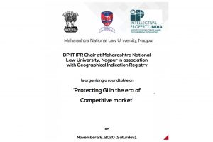 Department for Promotion of Industry and Internal Trade (Ministry of Commerce and Industry, Government of India) Chair on IPR and Centre for Intellectual Property Rights, Maharashtra National Law University, Nagpur in association with Geographical Indication Registry is organizing a roundtable on ‘Protecting GI in the era of Competitive market’ on November 28, 2020 (Saturday).