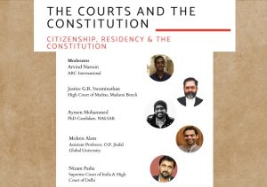 The Courts & The Constitution Conference, 2020 was organized by NALSAR University of Law, Hyderabad in collaboration with Law and Other Things and Azim Premji University, with the aim of critiquing the major legal developments that took place in the preceding year. One such legal development was the controversial the Citizenship (Amendment) Act, 2019, which sparked nationwide protests and almost 140 petitions in the Supreme Court. It was featured as the theme for discussion in one of the panels titled ‘Citizenship, Residency and the Constitution’ hosted by the Conference which were moderated by Mr. Arvind Narrain. The panelists were Justice G.R. Swaminathan, Aymen Mohammad, Mohsin Alam Bhat, and Nizam Pasha. One can find the video recording of the panel discussion here.