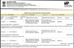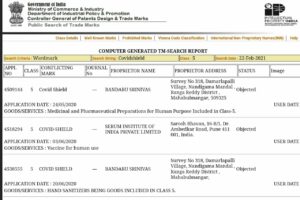 - Following which, the plaintiff applied for the mark “Covishield” on 12-12-2020, in the name of one “Mrs Archana Ashish Kabra w/o Mr Ashish Nandkishor Kabra”, claiming use since 30-5-2020.