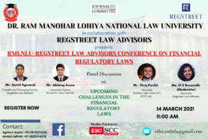 Dr. Ram Manohar Lohiya National Law University in collaboration with Regstreet Law Advisors presents RMLNLU-Regstreet Law Advisors Conference on financial regulatory laws.