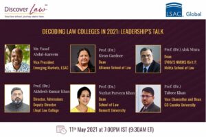 Join us in an interesting conversation with leadership from five premier law colleges in India as they share their insights on Decoding Law Colleges in 2021: Leadership’s Talk on May 11, 2021 07:00 PM Mumbai, Kolkata, New Delhi