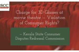 Kerala State Consumer Disputes Redressal Commission (KSCDRC): The Coram of Justice Sri K. Surendra Mohan (President) and T.S.P Moosath (Judicial Member), Ranjit. R and K.R. Radhakrishna (Members) decided on whether charging for the 3D glasses for a 3D movie would amount to violation of consumer rights or not.