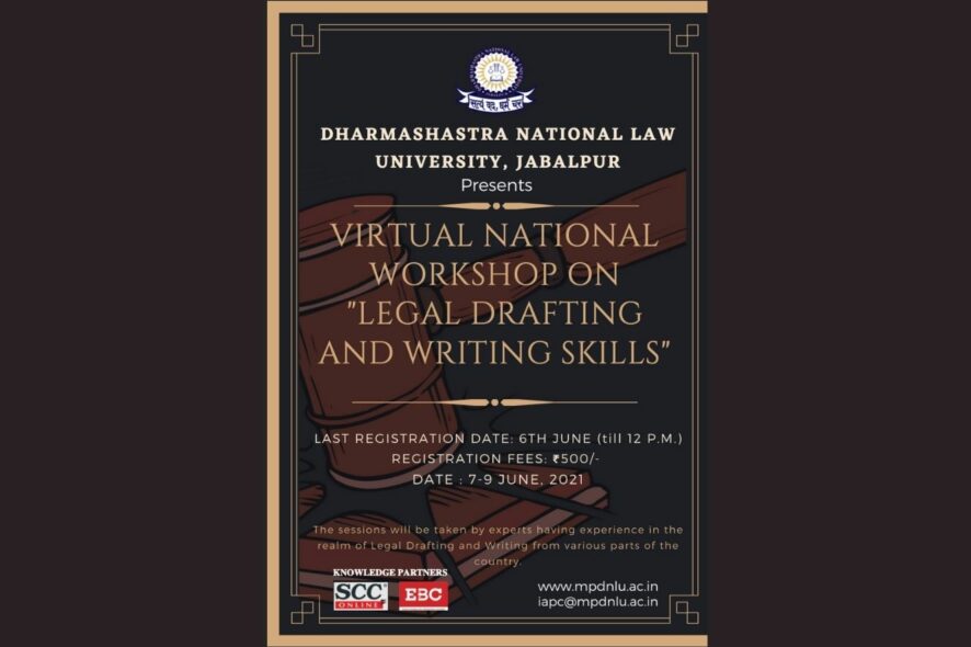 The Internship and Placement Cell of DNLU Jabalpur is organizing a three day National Workshop on “Legal Drafting and Writing Skills” from 7th June – 9th June, 2021.