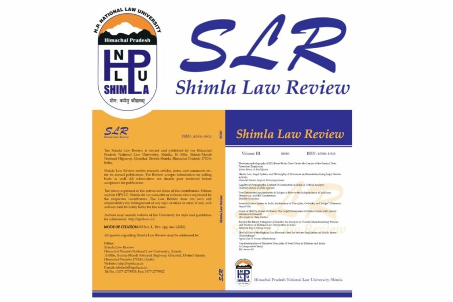 The Himachal Pradesh National Law University, Shimla, is launching Fourth Volume of its annual publication, Shimla Law Review (SLR) (ISSN: 2582-1903). The volume is scheduled to be out in the first quarter of 2022. In this connection, submissions, under different categories, are invited form interested faculty members, research scholars, judges, and professionals. The volume is not restricted to any particular theme and manuscripts with an inter-disciplinary perspective on contemporary socio-legal issues, theories, and developments awaiting scholarly treatment are encouraged. The last date for submission of contributions is September 15, 2021. Selection of entries are based on double-blind peer review. Queries about submission of papers and related matters may be directed to: editorslr@hpnlu.ac.in.