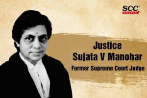Mrs. Justice Sujata Vasant Manohar, B.Sc., B.L., Born on 28th August, 1934. Educated at Anandilal Podar High School, Bombay; Elphinstone College, Bombay, Lady Margaret Hall, Oxford, U.K. And Lincoln’s Inn, London. Enrolled Advocate on 14th February, 1958 at Bombay. Practised in the Bombay High Court on the Original Side. Appointed Assistant Government Pleader, City Civil Court, Bombay during 1970-71. Appointed Additional Judge of the Bombay High Court from 23rd January, 1978. Appointed permanent Judge on 28.11.1978. Appointed as Chief Justice of Bombay High Court with effect from 15.1.1994 (A.N.). Transferred as Chief Justice of Kerala High Court with effect from 21.4.1994. Appointed as Judge of the Supreme Court of India with effect from 8.11.1994. Retired on 27.8.1999.