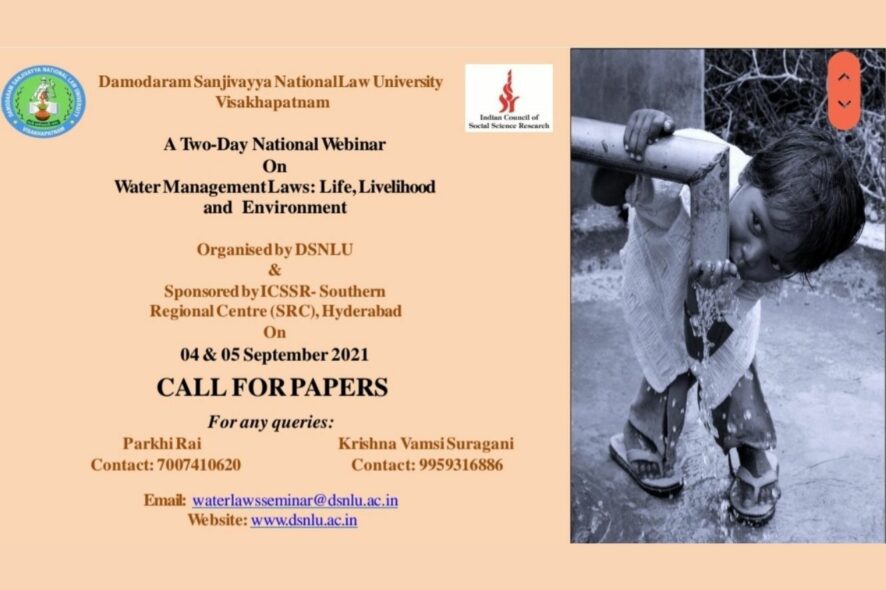 DSNLU is organising a Two Day National Webinar on Water Management Laws: Life, Livelihood And Environment on 04 & 05 September 2021.