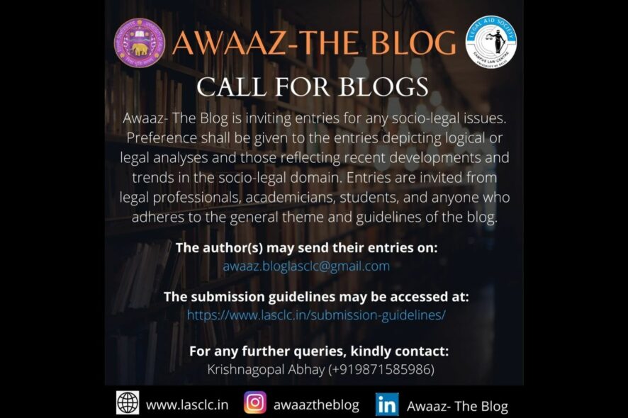 ‘Awaaz: The Blog’ is an initiative of the Legal Aid Society, Campus Law Centre, University of Delhi. The blog publishes articles with the aim to encourage diverse legal discourse on contemporary social, political, and legal issues, and wishes to create a space where different ideas can come together and converse with each other.