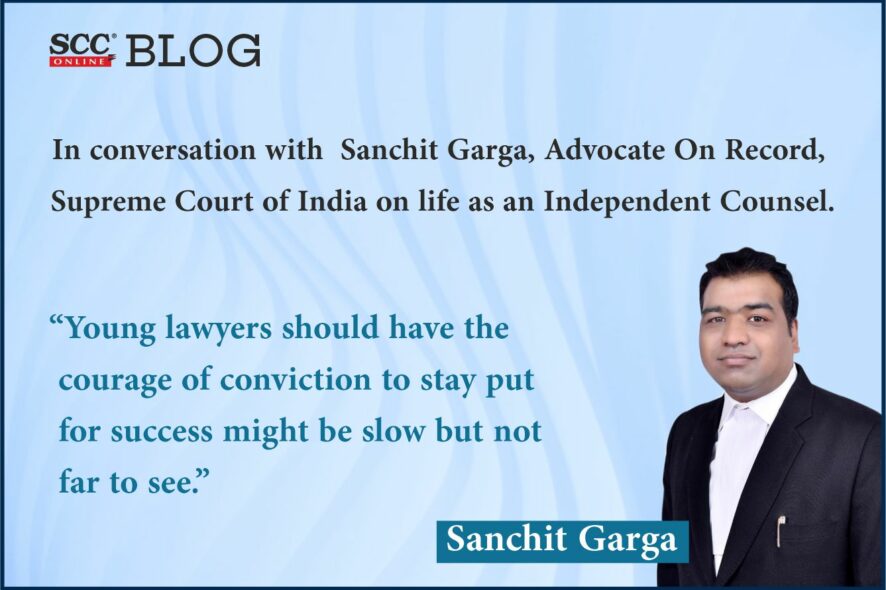 Mr Sanchit Garga, Advocate-on-Record, Supreme Court of India. He is a very young lawyer who has not only conquered the AOR examination but is also an established name at the Supreme Court as well as the Delhi High Court. He deals in a wide array of cases ranging from civil to criminal to arbitration matters.