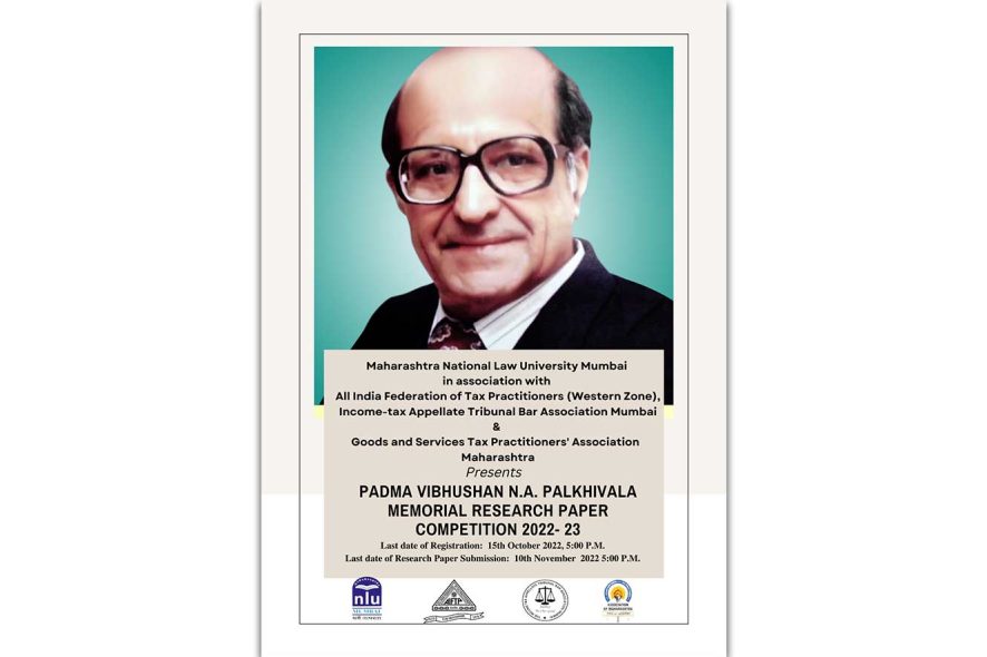 Maharashtra National law University Mumbai in association with All India Federation of Tax Practitioners (Western Zone), Income-tax Appellate Tribunal Bar Association — Mumbai & Goods and Services Tax Practitioners' Association — Maharashtra brings to you the 12th edition of the Padma Vibhushan N.A. Palkhivala Memorial National Moot Court (Virtual) Competition, 2022 as well as the Padma Vibhushan N.A. Memorial National Research Paper Competition, 2022. The moot revolves around taxation law and seeks to inculcate interest about Tax law practice in the minds of students.