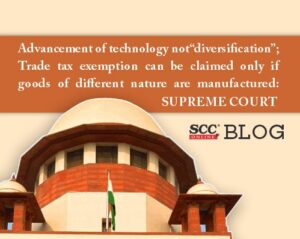 Supreme Court: Explaining the scope of “diversification” of goods for the purpose of claiming exemption from trade tax, the bench of MR Shah* and Krishna Murari, JJ has held that as per Section 4-A (5) of the U.P. Trade Tax Act, 1948, the “diversification” can be considered only in a case where “goods of different nature” are produced, and only then the exemption shall be available. The goods manufactured on “diversification” must be a “different”, “distinct” and a “separate” good in nature.