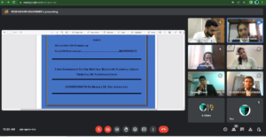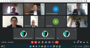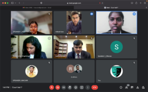 Mr. Arvind Srevatsa, Mr. Karthik Jayakumar and Ms. Kaavya Silamban are all set to choose the best among the two teams. Experience, enthusiasm and interaction is the mood of this Court Hall. As soon as the rounds began, the pertinent questions began! The fundamentals, that is, knowledge of facts was checked. Team Kingfisher was first quizzed on the composition of the NGT and if expert members can also be addressed as ‘Lordship’. An interesting question which was largely left unanswered. The next curveball was thrown in the form of ‘time of start of Cause of Action and start of limitation period thereof’. The judge believed that Cause of Action started in May, 2019 but the Counsel tried her best to convince them about CoA starting in Nov, 2019. Speaker 2 from Team Kingfisher was quizzed extensively on the probabilities and possibilities that she used in her argument. ‘What is a notified bird sanctuary, notified turtle nesting ground’ formed the crux of the questions thrown her way.