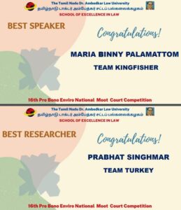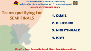 The 16th Pro Bono Enviro National Moot Court Competition, 2023 organized by TNDALU School of Excellence in Law seeks to bring to the forefront the increasing need to address environmental concerns and encourages students to be pioneers in understanding the complexities of environmental law and the urge for the same.