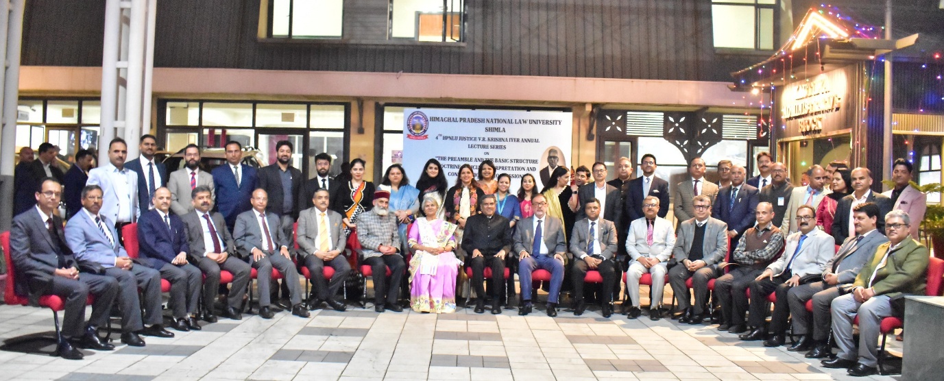 Himachal Pradesh National Law University (HPNLU), Shimla organized the 4th HPNLU Justice V.R. Krishna Iyer Annual Law Lecture on the theme “The Preamble and the Basic Structure Doctrine: Judicial Interpretation and Constitutional Progression.” The lecture was delivered by Hon’ble Mr. Justice Sanjeev Khanna, former Chief Justice of India and Distinguished Professor, HPNLU, Shimla. The event was graced by Hon’ble Mr. Justice Gurmeet Singh Sandhawalia, Chief Justice, High Court of Himachal Pradesh, and Chancellor, HPNLU, Shimla, along with Hon’ble Judges of the High Court of Himachal Pradesh, Justice Vivek Singh Thakur, Justice Ajay Mohan Goel, Justice Sandeep Sharma, Justice Ranjan Sharma, Justice Bipin Chander Negi, Justice Rakesh Kainthla, Justice Jiya Lal Bhardwaj, and Justice Romesh Verma. The event was also attended by distinguished guests including the Registrars of the High Court of Himachal Pradesh, Secretary (Law) to the Government of Himachal Pradesh, Director and Deputy Director of the Himachal Pradesh Judicial Academy, Shri Lovneesh Kanwar, Chairman, Bar Council of Himachal Pradesh, Shri Harminder Singh Chandel, President, HP High Court Bar Association, Prof. Rajinder Verma, Pro Vice-Chancellor, Himachal Pradesh University, Prof. Sanjay Sindhu, and Prof. Umesh Kumar, Professors of Law, Himachal Pradesh University, Shri Peeyush Verma, Former President, HP High Court Bar Association, among other eminent dignitaries. The occasion also marked the inauguration of the Digitized Library at HPNLU by Hon’ble Justice Sanjeev Khanna. The event was organized under the leadership of Prof. (Dr.) Priti Saxena, Vice-Chancellor, HPNLU, Shimla.
